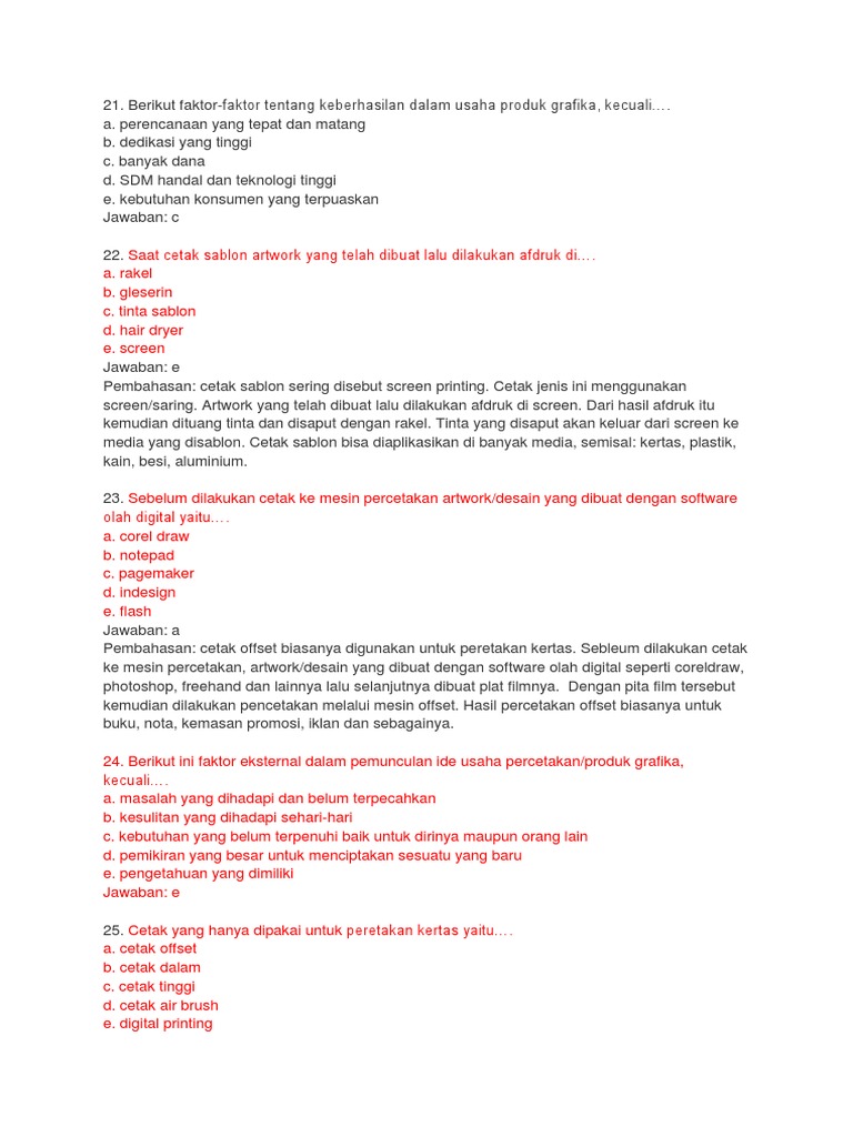 Berikut dibawah ini, soal uts prakarya dilengkapi kunci jawabannya untuk siswa sma/ma dimulai dari pertanyaan yang pertama. Ini merupakan 50 soal kewirausahaan kelas 10 lengkap dengan jawabannya yang sudah disusun sedemikian rupa sehingga bisa di download dengan gratis pada link dibawah soal ini. 10 latihan soal glb dan glbb beserta jawabannya. Ditinjau dari asal usul kata. Komoditi yang akan diusahakan untuk usaha kerajinan dan produksi grafika harus memperhatikan.