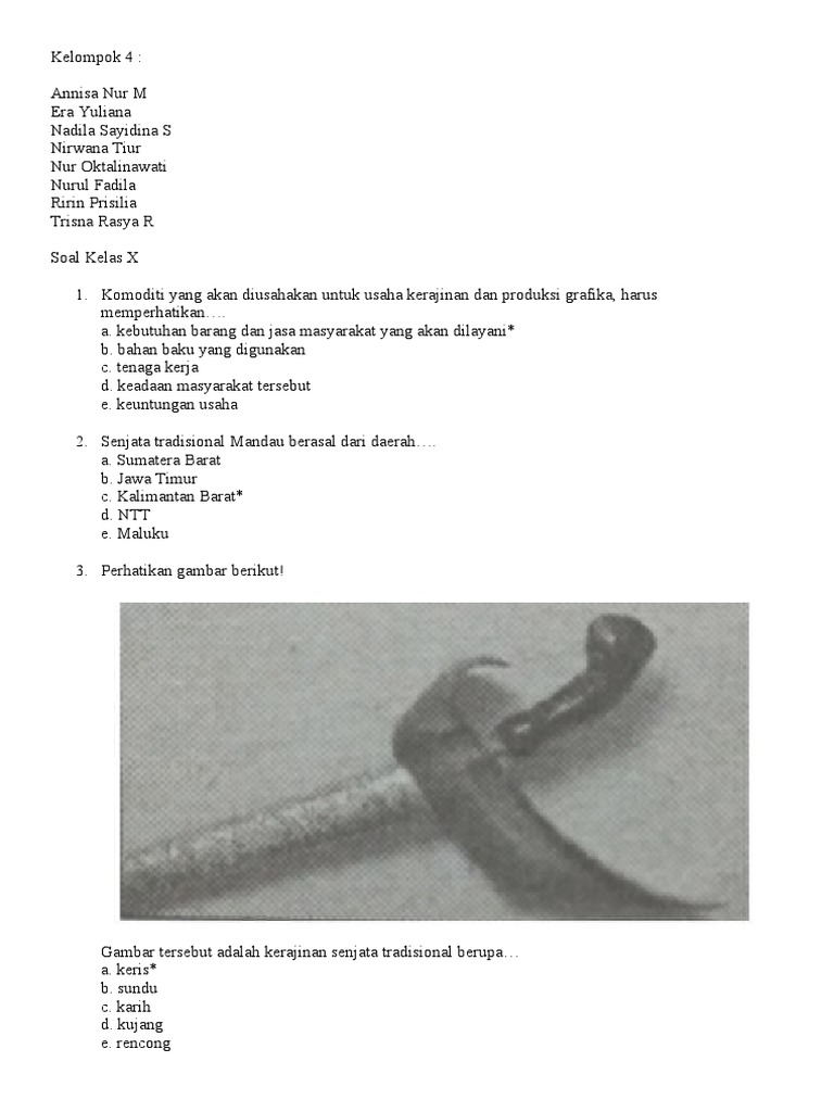 Berikut yang tidak termasuk dalam kerajinan yang inspirasinya dari artefak/budaya lokal yaitu. Ini merupakan 50 soal kewirausahaan kelas 10 lengkap dengan jawabannya yang sudah disusun sedemikian rupa sehingga bisa di download dengan gratis pada link dibawah soal ini. Buka website sumber untuk pembahasan lengkapnya. Memiliki keinginan yang besar untuk menggali dan mendayagunakan sumber sumber ekonomis di lingkungan setempat. Senjata tradisional mandau berasal dari daerah…. Komoditi yang akan diusahakan untuk usaha kerajinan dan produksi grafika, harus memperhatikan…. Berikut dibawah ini, soal uts prakarya dilengkapi kunci jawabannya untuk siswa sma/ma dimulai dari pertanyaan yang pertama. Komoditi yang akan diusahakan, harus memperhatikan. Komoditi yang akan diusahakan untuk usaha kerajinan dan produksi grafika harus memperhatikan. Kebutuhan barang dan jasa masyarakat yang akan dilayani b. Komoditi yang akan diusahakan untuk perjuangan kerajinan dan produksi grafika, harus memperhatikan…. Berikut dibawah ini, soal uts prakarya dilengkapi kunci jawabannya untuk siswa sma/ma dimulai dari pertanyaan yang pertama. 20201020 soal soal pilihan ganda prakarya dan kewirausahaan mata pelajaran wajib kelas 11 semester satu kurikulum 2013 beserta jawaban berisikan materi yang sama dengan essay prakaya dan kwu kelas xi semester 1 yaitu tentang wirausaha kerajianan.