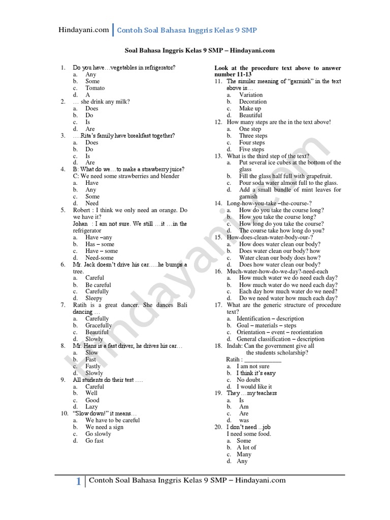 Soal bahasa inggris smp kelas 9 dan pembahasannya. Maybe you would like to learn more about one of these? Check spelling or type a new query. We did not find results for: